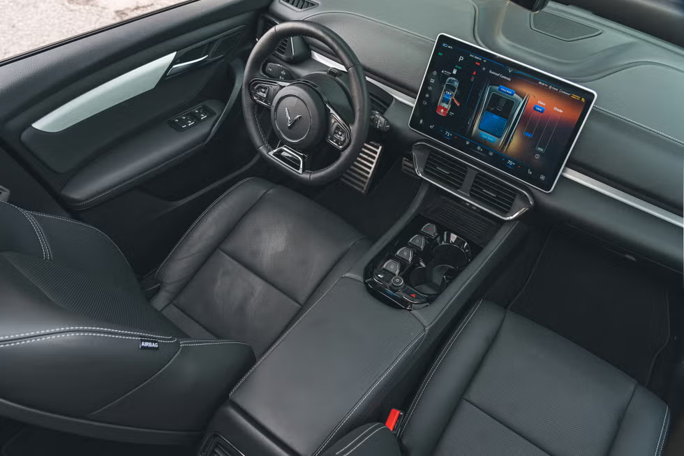 - Không gian: Với chiều dài cơ sở lớn, VF8 cung cấp không gian rộng rãi cho 5 người ngồi cùng khoang hành lý linh hoạt (376 lít phía sau và 88 lít phía trước).